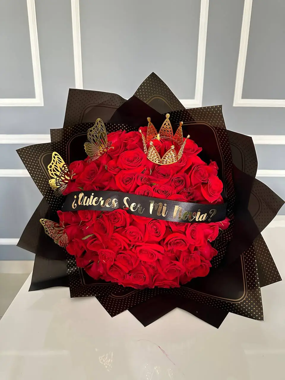 Bouquet buchón 100 rosas con frase