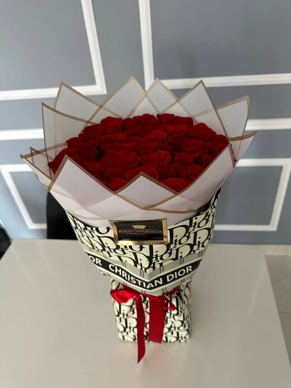 Bouquet buchón 50 rosas con base (papel Dior negro)