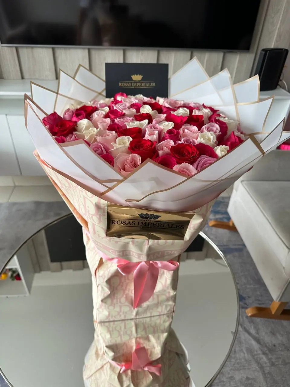 Bouquet buchón con base 100 rosas